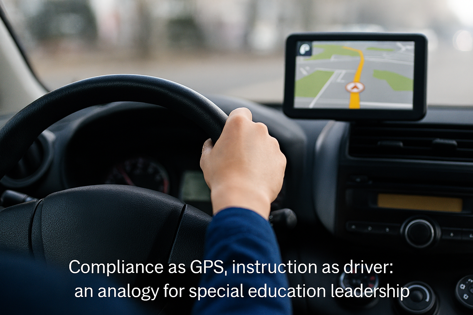 This analogy clarifies a tension I see playing out in district after district. When compliance becomes the destination rather than the foundation, staff prioritize documentation over learning. The system becomes performative. When leaders claim to prioritize instruction but lack the structural commitment of compliance, the work becomes inconsistent and inequitable. Without the GPS, even the most skilled driver gets lost.